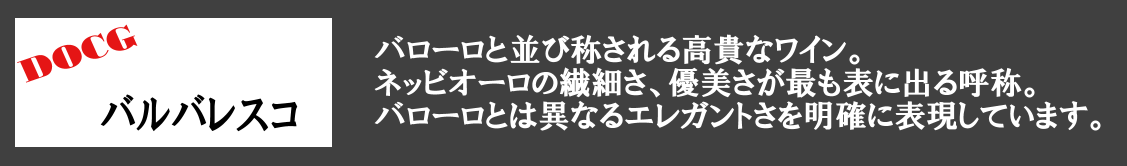 特にネッビオーロ品種で造られる深みのある長期熟成能力の高い赤ワイン(バローロ、バルバレスコなど)