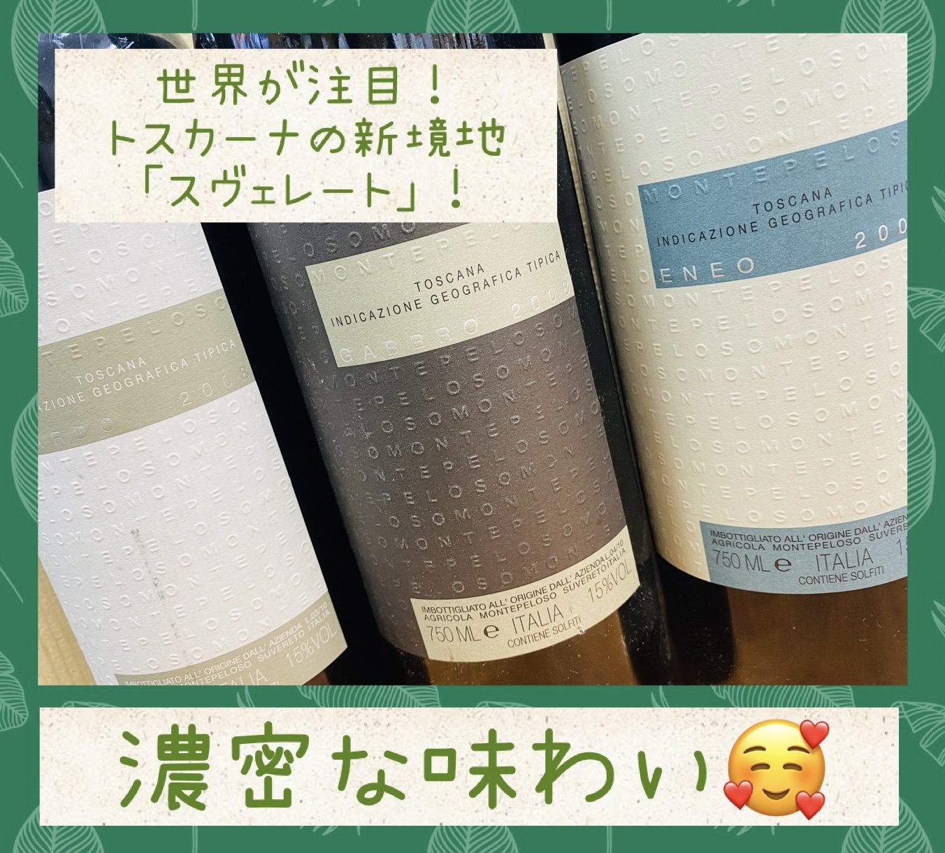 世界が注目しているトスカーナの新興産地「スヴェレート地区」の旨味を感じてください!